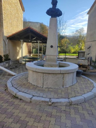 Sur l’église de Séderon, il y a une marque, gravée dans la pierre, à gauche en regardant la porte. Comme l’usure du temps la rendait de moins en moins visible, on l’a colorée en bleu pour pouvoir continuer à lire : 29 7bre 1900