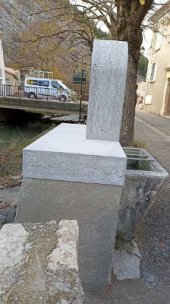 Sur l’église de Séderon, il y a une marque, gravée dans la pierre, à gauche en regardant la porte. Comme l’usure du temps la rendait de moins en moins visible, on l’a colorée en bleu pour pouvoir continuer à lire : 29 7bre 1900