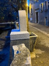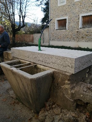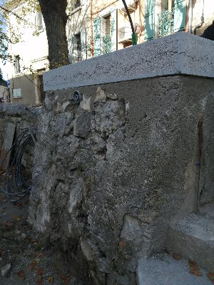 Sur l’église de Séderon, il y a une marque, gravée dans la pierre, à gauche en regardant la porte. Comme l’usure du temps la rendait de moins en moins visible, on l’a colorée en bleu pour pouvoir continuer à lire : 29 7bre 1900
