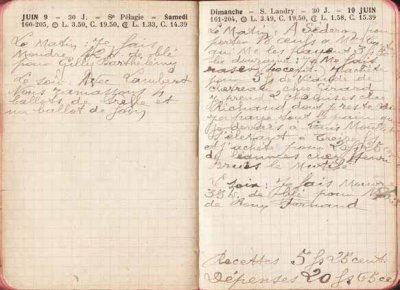 Certains lecteurs nous ayant fait remarquer la monotonie (toute relative) de ce récit, nous vous en proposons une formule différente : les notes de chaque journée seront désormais transcrites, en respectant scrupuleusement la graphie du texte original. Seules les journées les plus mémorables seront reproduites en fac-similé. Nous y gagnerons en espace et pourrons ainsi avancer plus vite dans le temps de cette année 1923.